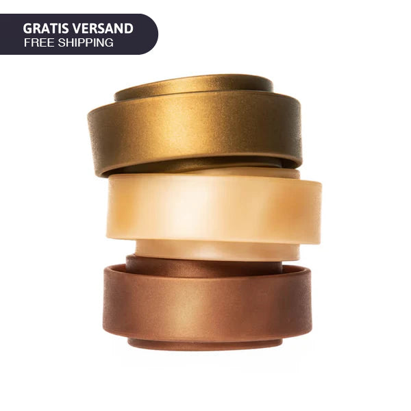Aufgrund unseres geschützten Designs wird das Haar, anders als bei herkömmlichen Haargummis, nicht an einem Punkt zusammengequetscht, sondern gleichmäßig im Ring verteilt.